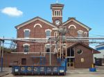 The main building with the clock tower is now listed and cannot be demolished. The long building with the half barrel roof is one of the few workshop remaining on the site from 1852.